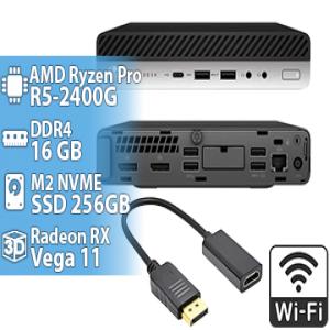 Equipo mini Pc Hp Elitdesk 705 G4 Mini AMD Ryzen 5 Pro 2400G 16GB 256GB Wifi 1XHdmiI 1XVga 2XDisplayport 6XUsb 1XTipo C 1XRj45 2XJack3.5mm Windows 11 Profesional Color negro