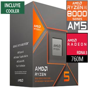 Procesador AMD Ryzen 5 8600G 4.3Ghz hasta 5Ghz 6 nucleos 12 hilos 8 gpu 16Mb cache L3 6MB Cache L2 radeon 760M Graphics 65W A